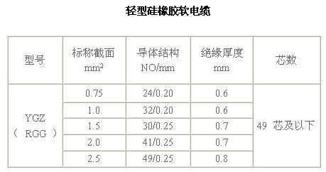產(chǎn)品特性: 1、額定溫度:-50℃~+200℃(高使用環(huán)境溫度:200℃ 低使用環(huán)境溫度: -50℃) 2、額定電壓:YGZ300/500V、YGC450/750V 3、導(dǎo) 體:?jiǎn)胃蚨喙慑冨a銅絲 4