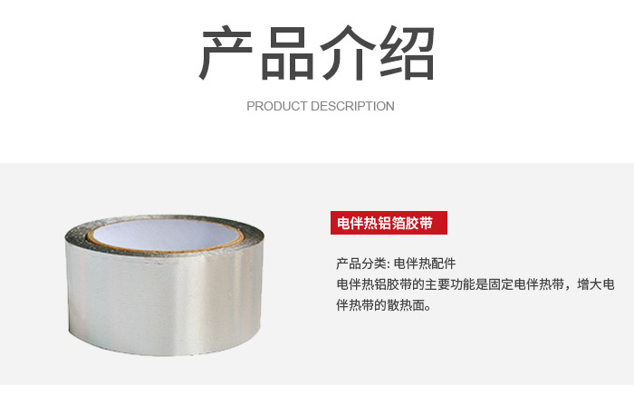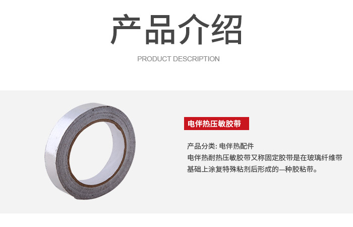 作用是輔助固定和密封防護(hù),常用來(lái)固定鋁箔膠帶的搭接處、填補(bǔ)縫隙,或在伴熱帶安裝完成后,對(duì)局部位置進(jìn)行加固;部分耐溫型壓敏膠帶還可用于低溫環(huán)境下的臨時(shí)固定,兼具一定的絕緣、防潮效果。