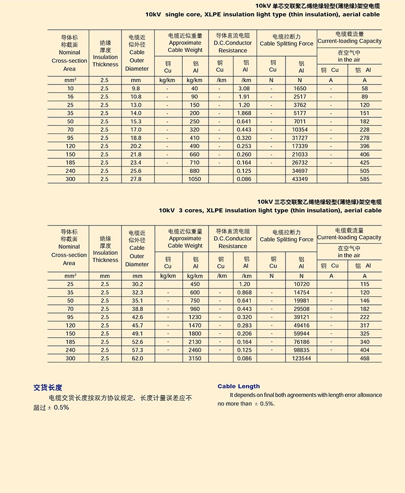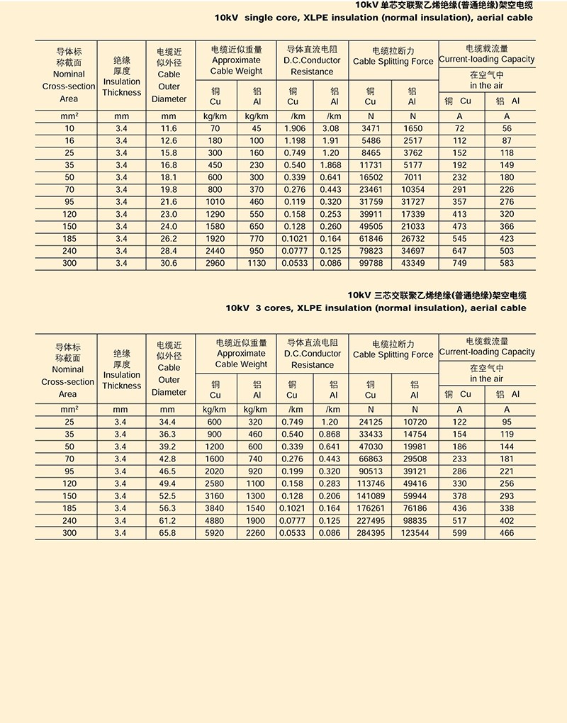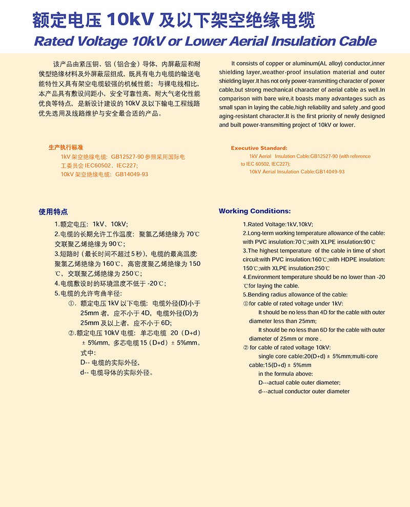 額定電壓10KV以下架空J緣電纜