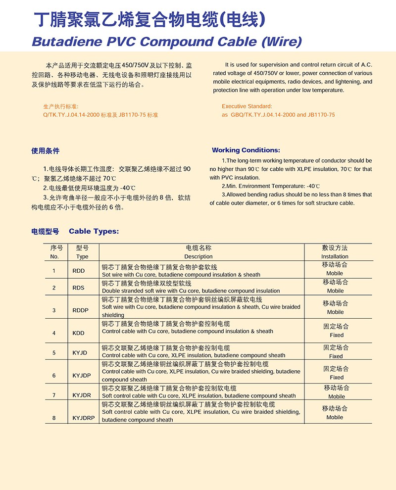 丁腈聚錄乙烯復合物電纜(電線)
