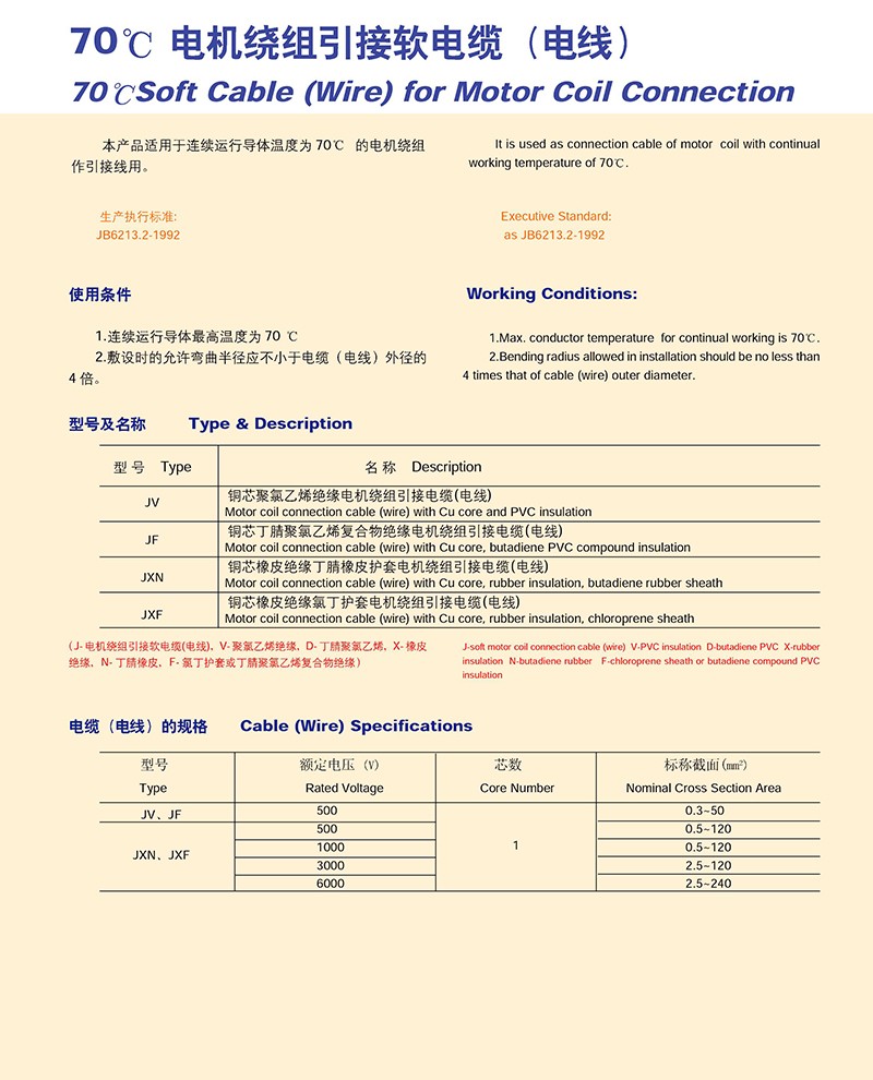 70℃機電繞組引接軟電纜(電線)
