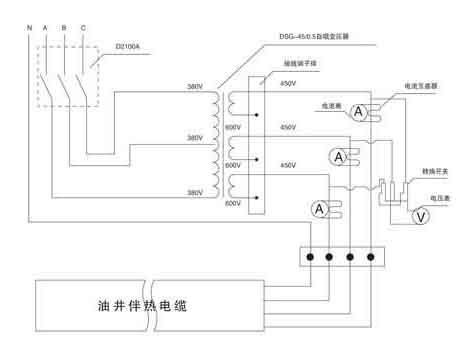 電路原理示意圖(見(jiàn)圖一) | 電伴熱加熱裝置示意圖 | |