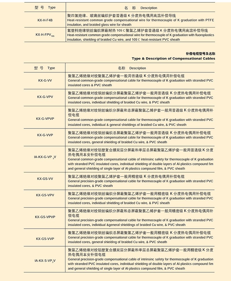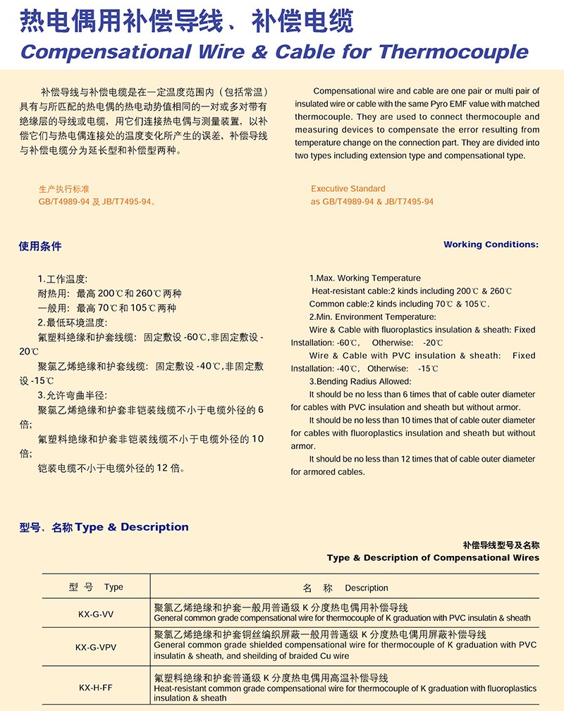 熱電偶用補(bǔ)償導(dǎo)線、補(bǔ)償電纜